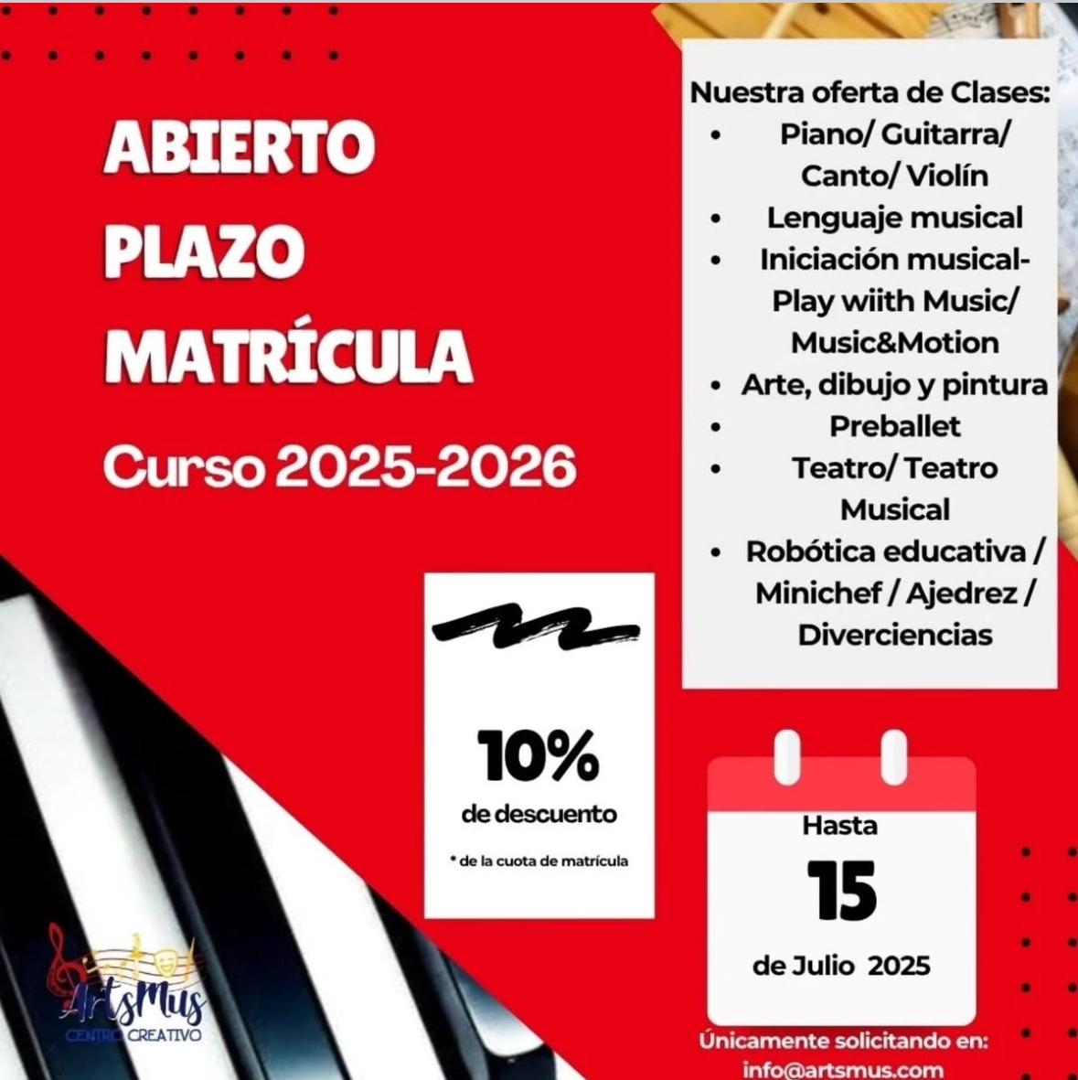 ABIERTO PLAZO MATRÍCULA CURSO 2025-2026.